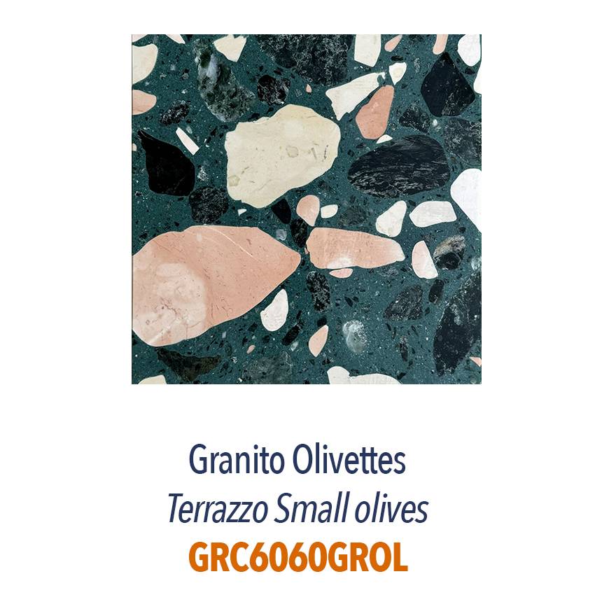 - Olivette : Base résine Verte avec agrégats XXL Rose, Blanc et Noir