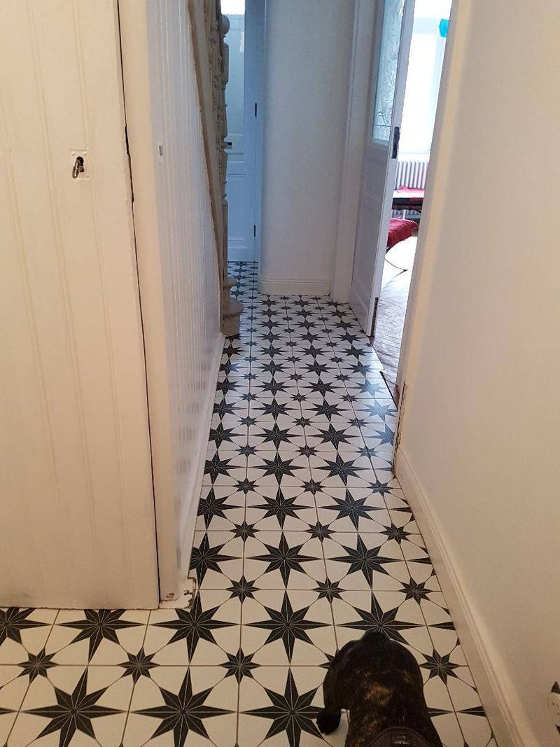 Voici une superbe entrée réalisée avec nos carreaux en grès Cérame Stella Nero! Les carreaux en grès cérame sont idéals pour un usage dans un hall d'entrée car ils sont très résistants et très faciles à entretenir! En plus d'être pratique au quotidien, les carreaux en grès cérame Diffusion Céramique sont très tendances. Nous vous proposons plus de 35 designs pour que vous soyez de trouver celui qui s'insérera parfaitement dans votre intérieur!