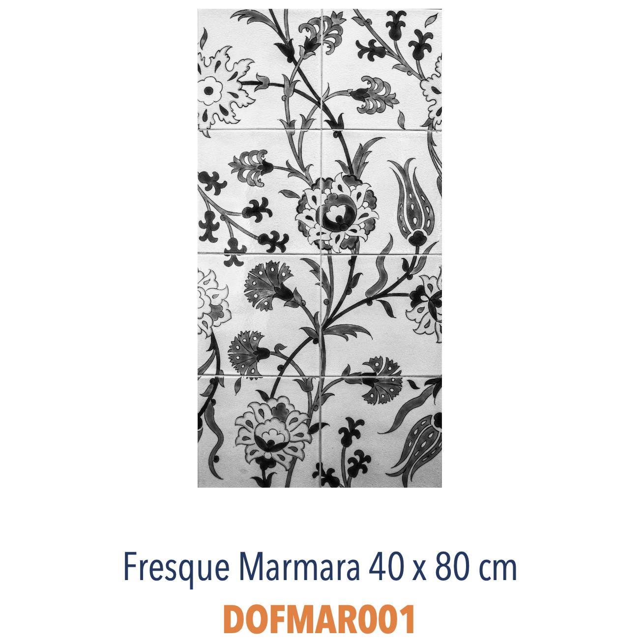 L'avantage de la fresque Marmara est que vous pouvez poser plusieurs fresques l'une à côté de l'autre pour former un dessin continu. Une fois les fresques posées ensemble, il est impossible de dissocier une fresque d'une autre, les motifs sont parfaitement raccords.