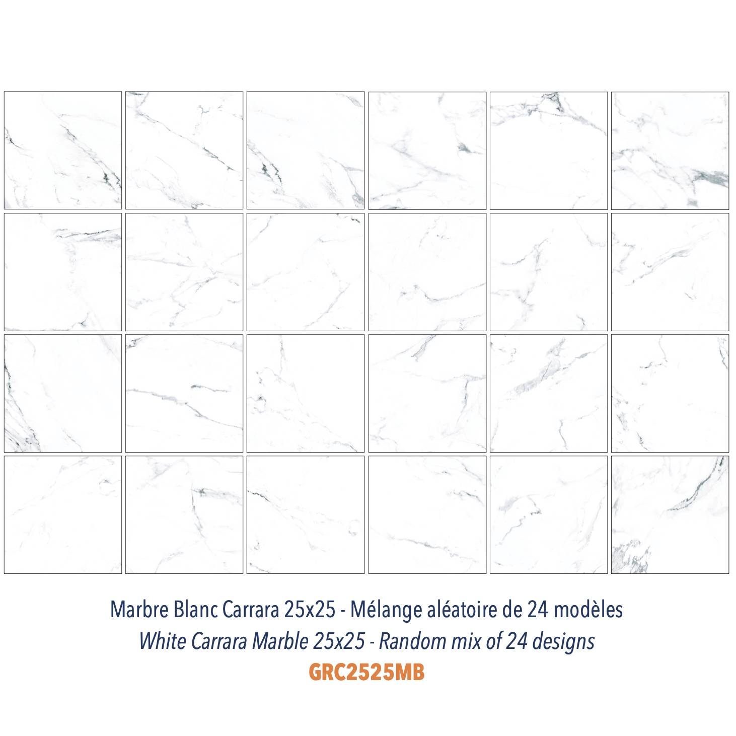 Dans chaque mètre acheté, il y a toujours au moins 10 modèles différents or l'oeil ne sait repérer que 6 modèles différents à la fois. Ainsi, une fois posé, on a l'impression que chaque carreau est unique. Exactement comme les carreaux de marbre véritable !