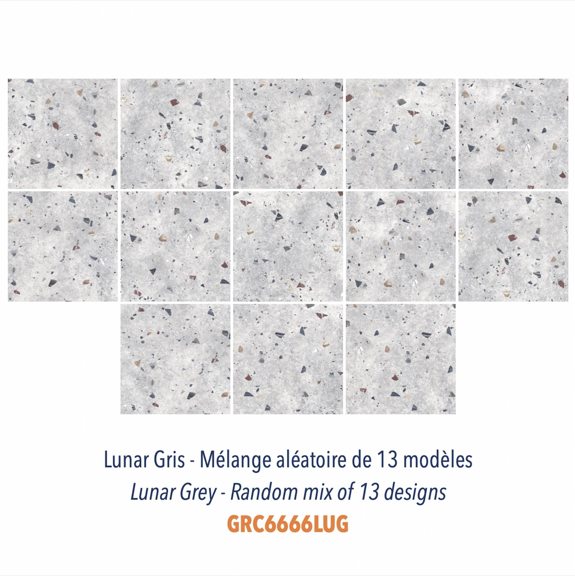 Dans chaque mètre acheté, il y a toujours au moins 10 modèles différents or l'oeil ne sait repérer que 6 modèles différents à la fois. Ainsi, une fois posé, on a l'impression que chaque carreau est unique. Exactement comme les dalles de véritable Terrazzo!
