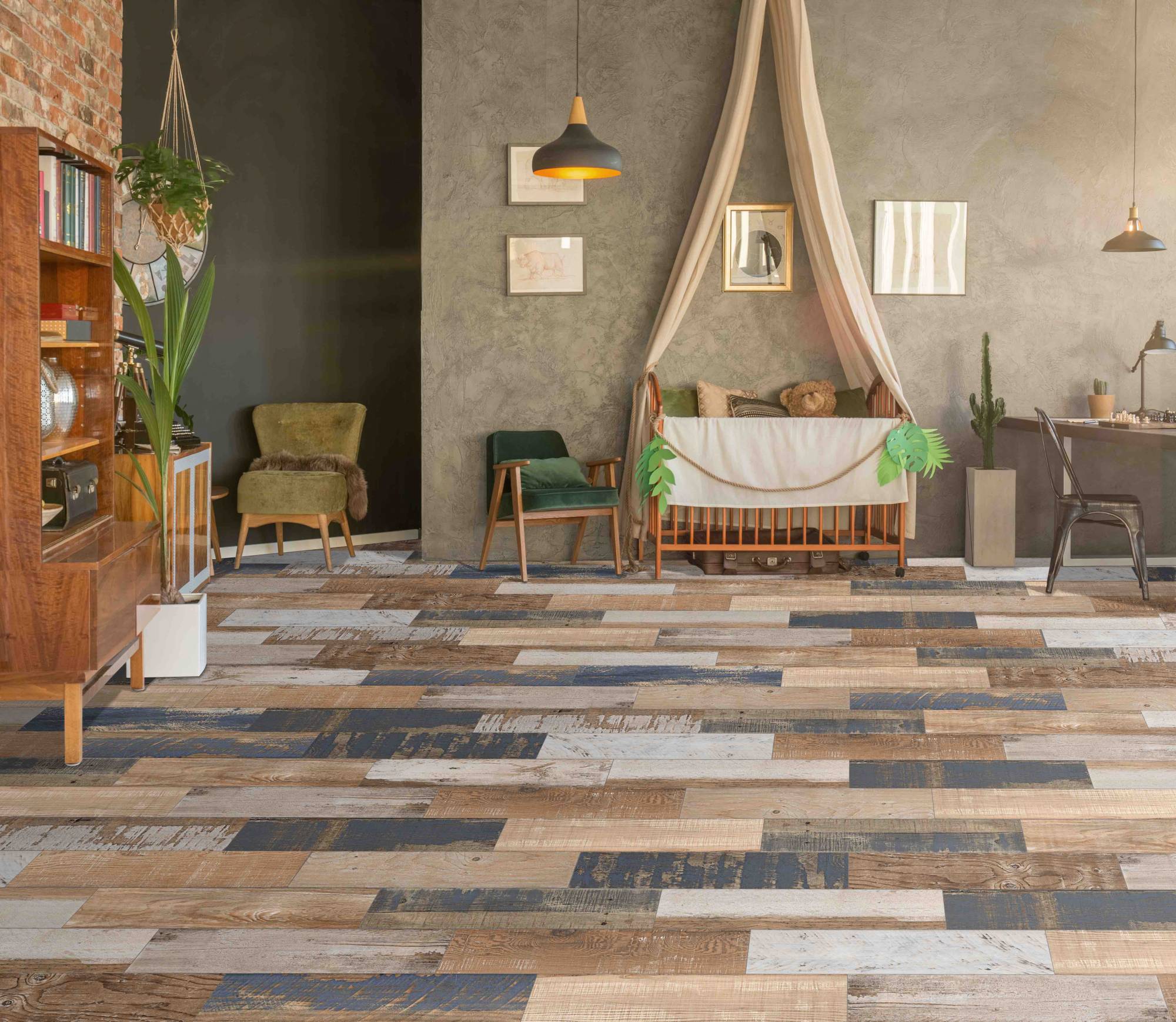 Ces lames imitation parquet en bois en grès cérame ressemblent parfaitement à du véritable bois, mais sont plus faciles d'entretien et plus durables que ce dernier !