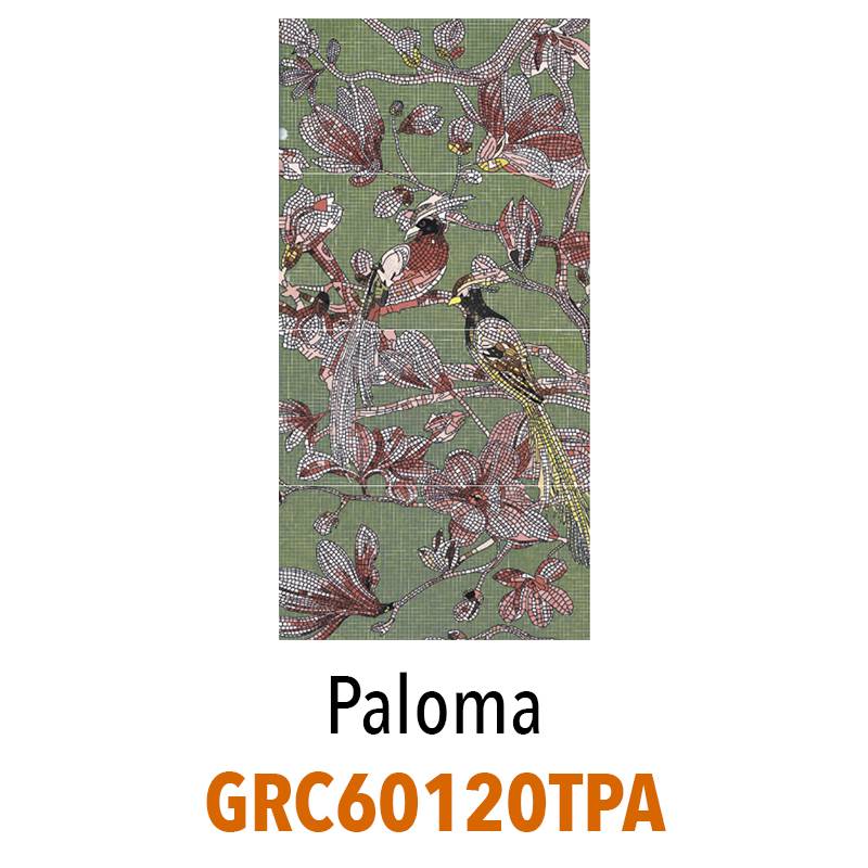 Paloma : Une palette de verts et rouges vibrants, sublimée par la présence délicate d’oiseaux, pour une atmosphère poétique et naturelle.