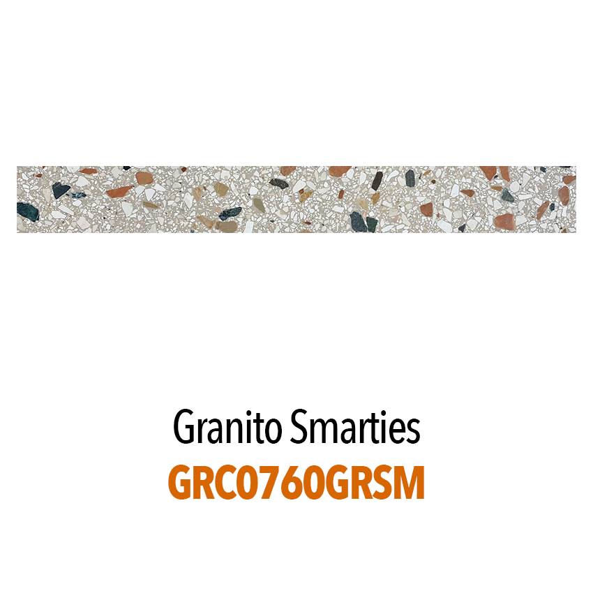 Complétez vos réalisations avec les plinthes de terrazzo disponibles en deux familles distinctes : terrazzo cimentaire (finition adoucie mat) et terrazzo résineux (finition poli brillant). Avec une dimension de 7,1 x 60 cm, ces plinthes assurent une finition harmonieuse et raffinée à vos sols et murs en terrazzo.