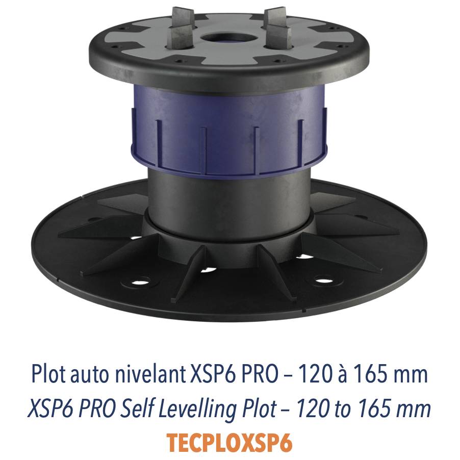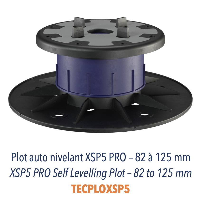 Gamme XSPCe sont des plots auto nivelants, leur tête pivote pour s'adapter parfaitement à la pente du sol et pour que vous ayez une surface parfaitement plane en un tour de main. Un coussin en caoutchouc est intégré au plot pour une confort acoustique optimal. La gamme XSP est un peu comme la Rolls des plots!