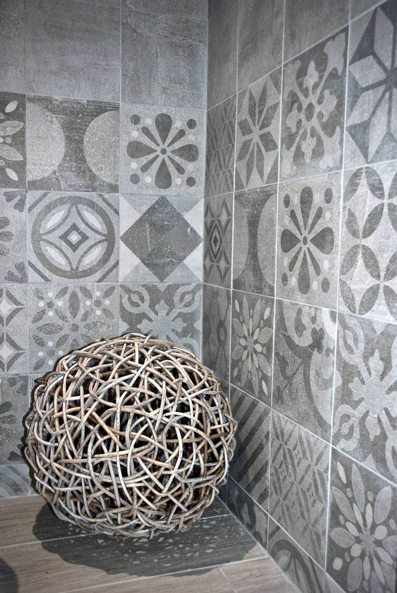 L'ensemble est superbe, très moderne! Le grès cérame est idéal dans les pièces humides ou bien dans celles où il y a un point d'eau car il ne glisse pas, n'absorbe pas et se nettoie très facilement!