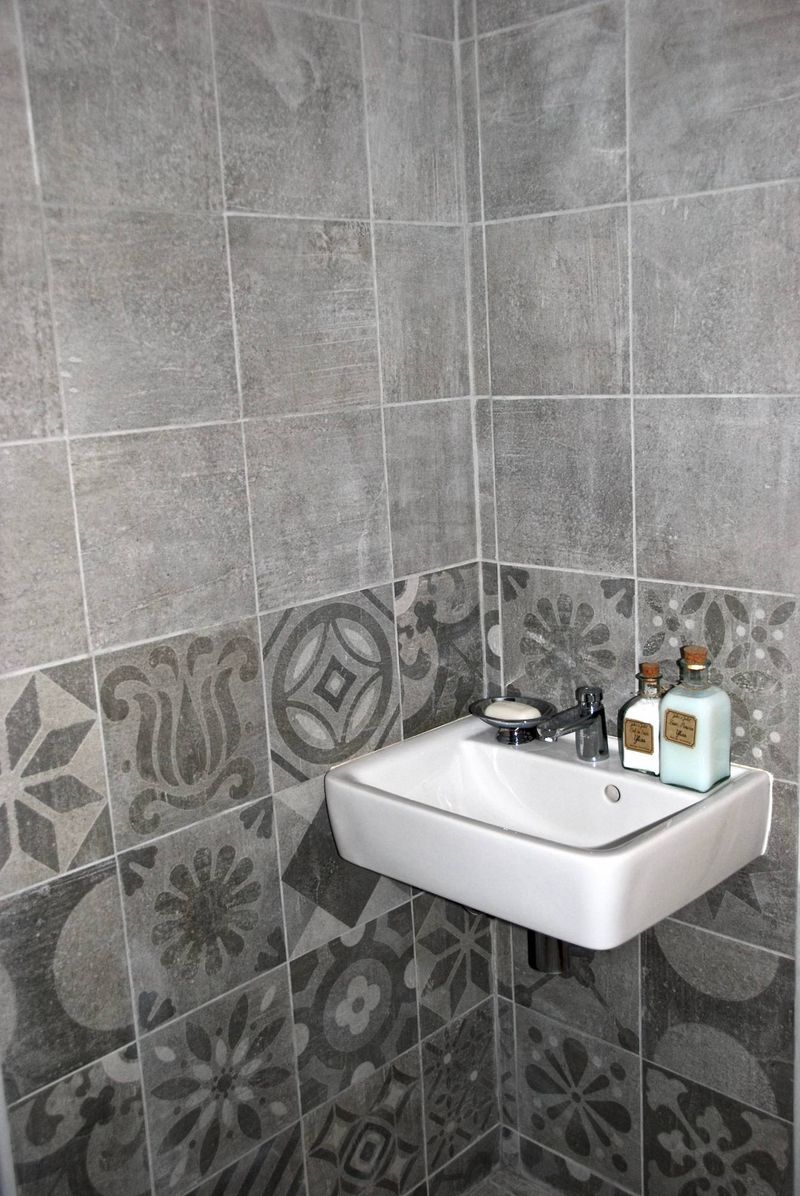 Tous les murs sont recouverts de carreaux en grès cérame au format 25 x 25 cm!