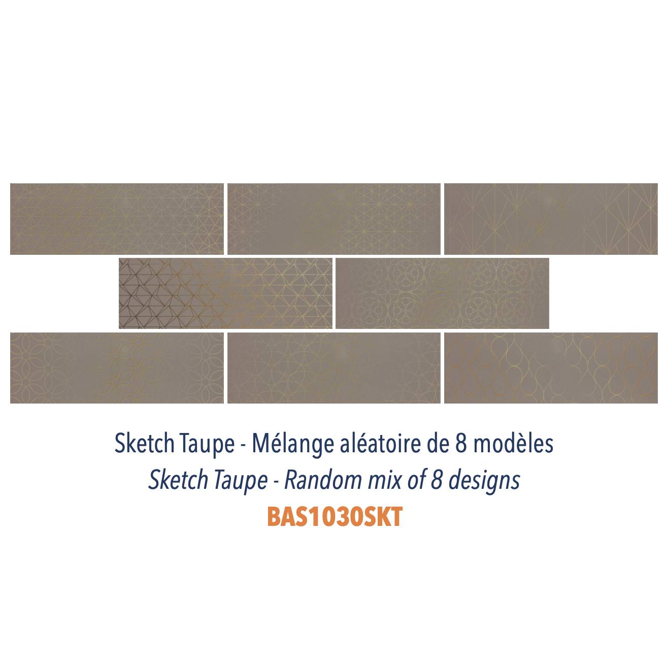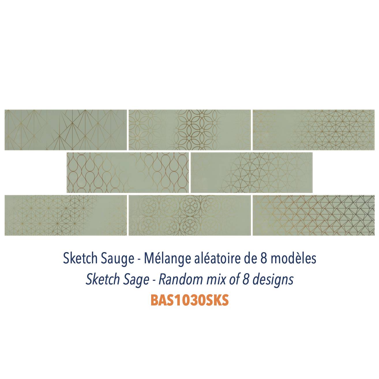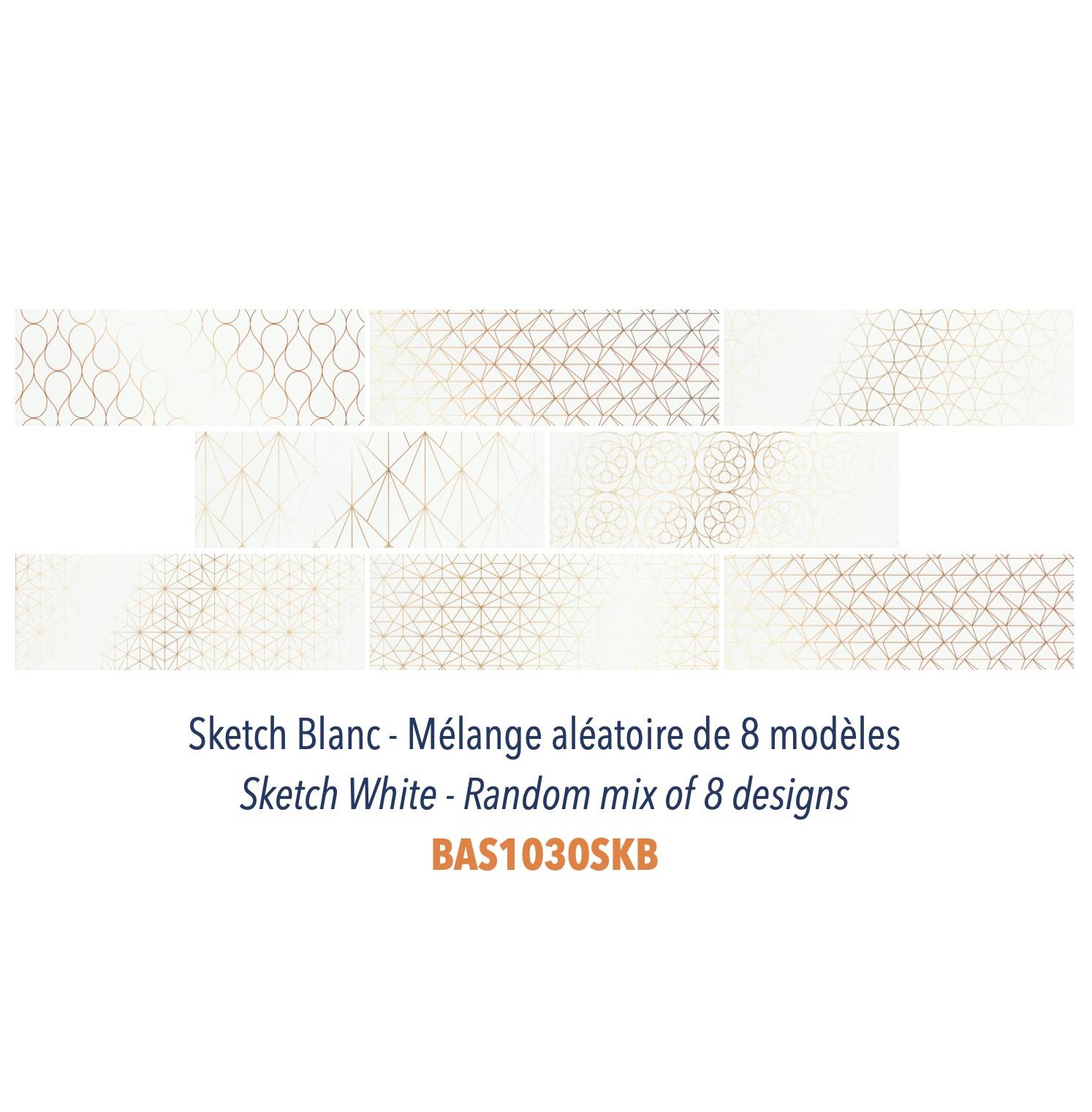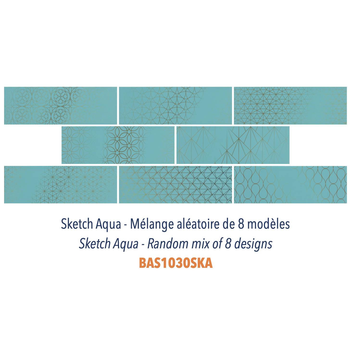 Nos carreaux Sketch ne sont pas de simples carreaux plats 10 x 30 cm colorés. Ils ont un léger décor sérigraphié doré avec un effet vieilli sur le dessus qui leur confère un look branché et original tout en restant subtil et classe.