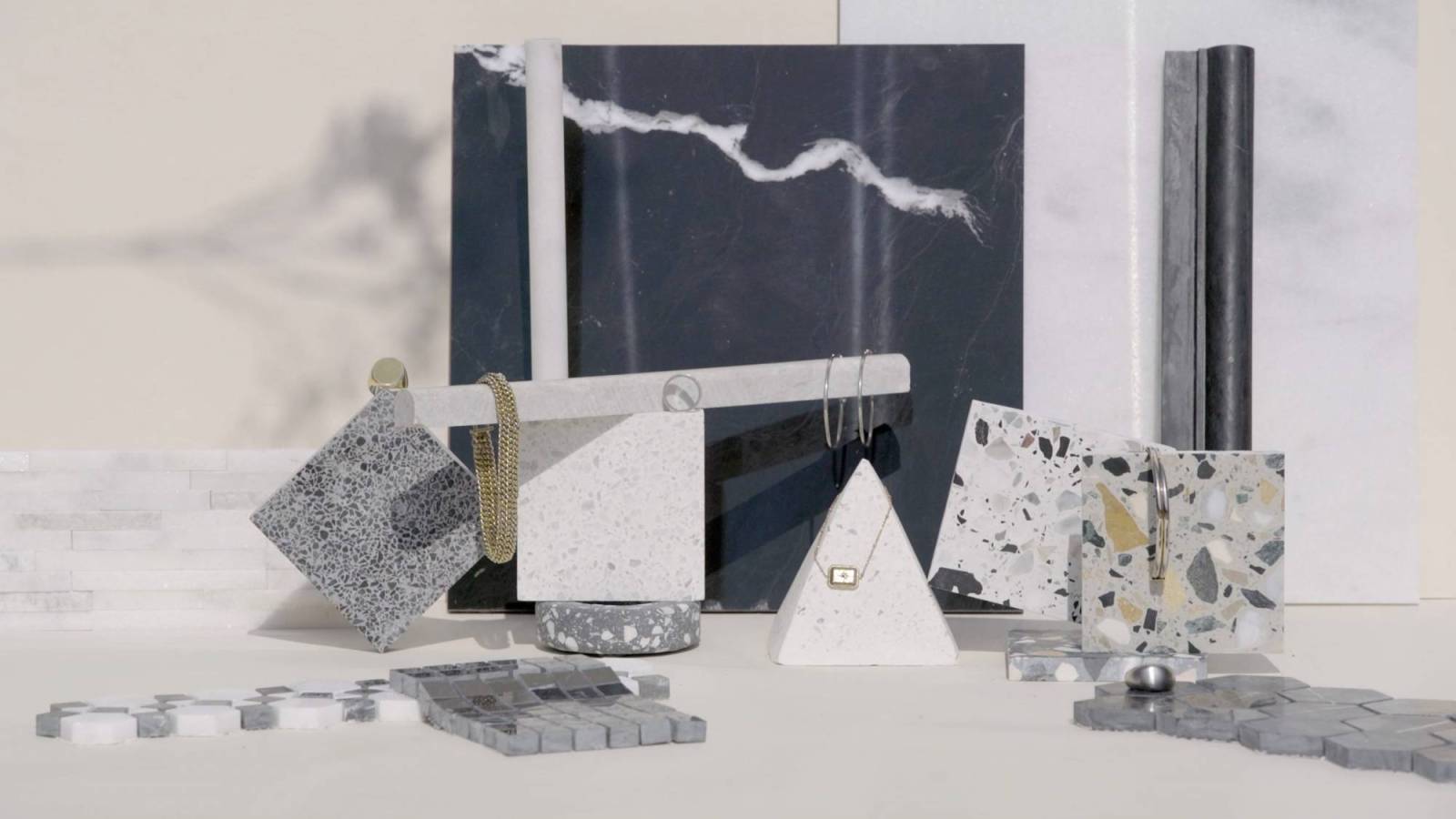 Pépites de roche, poudres, colorants et liants: c'est ainsi que naissent nos agglomérats de marbre.